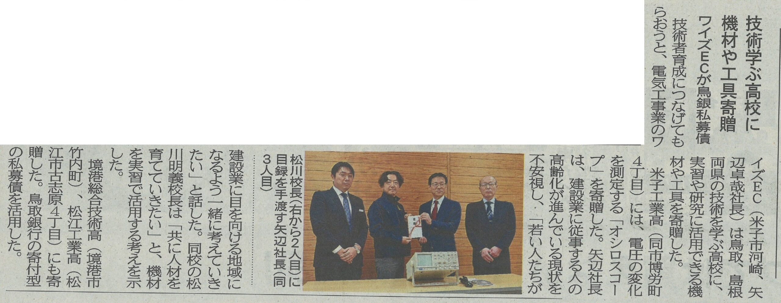 地域を支える一員に…米子市の建設会社が工業高校へ「オシロスコープ」寄贈 地元企業の魅力発信(鳥取)